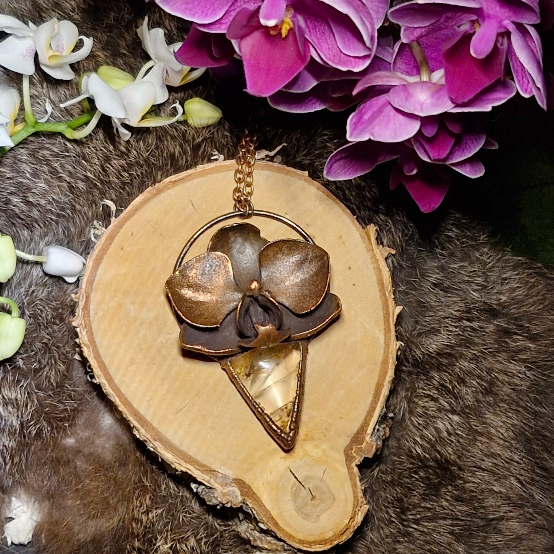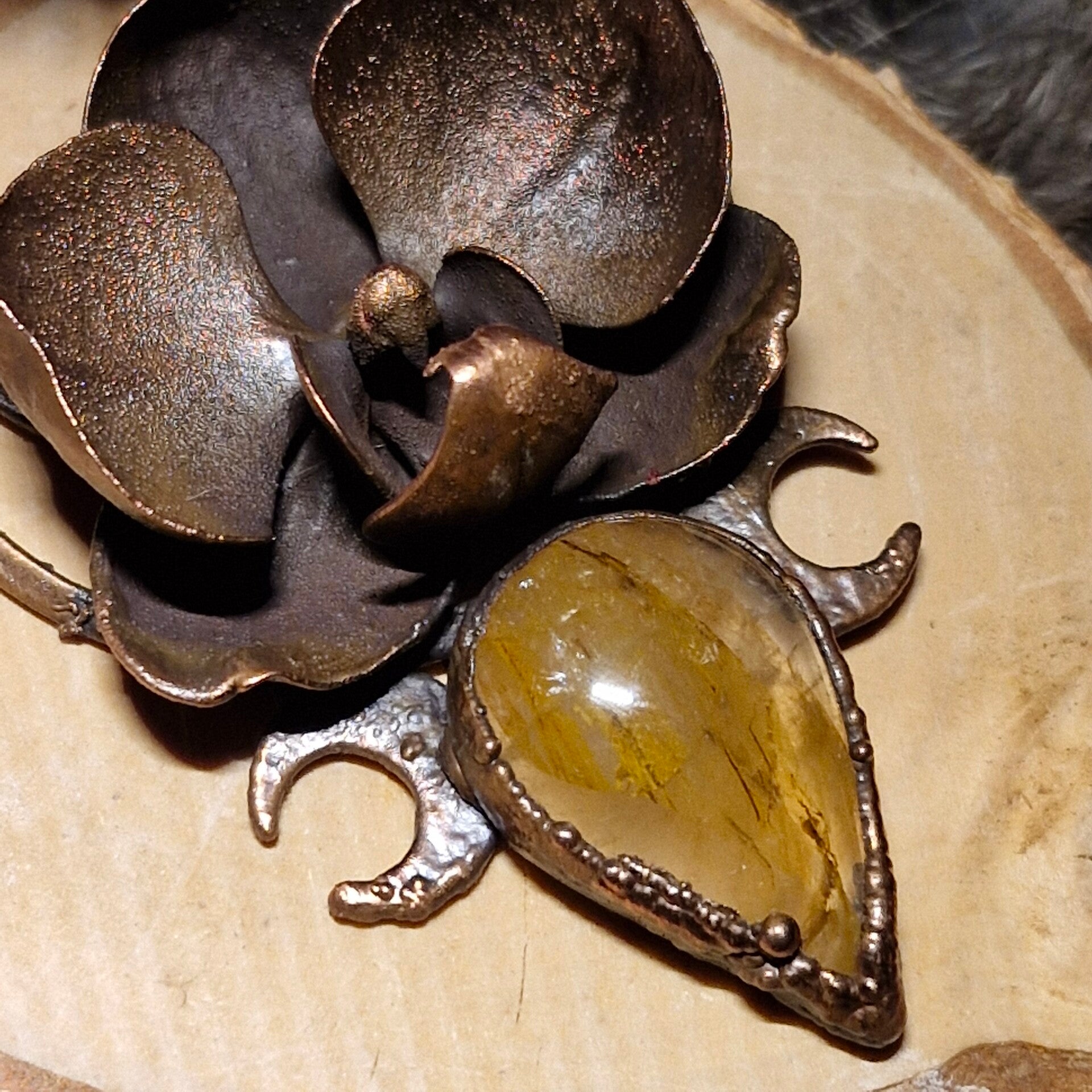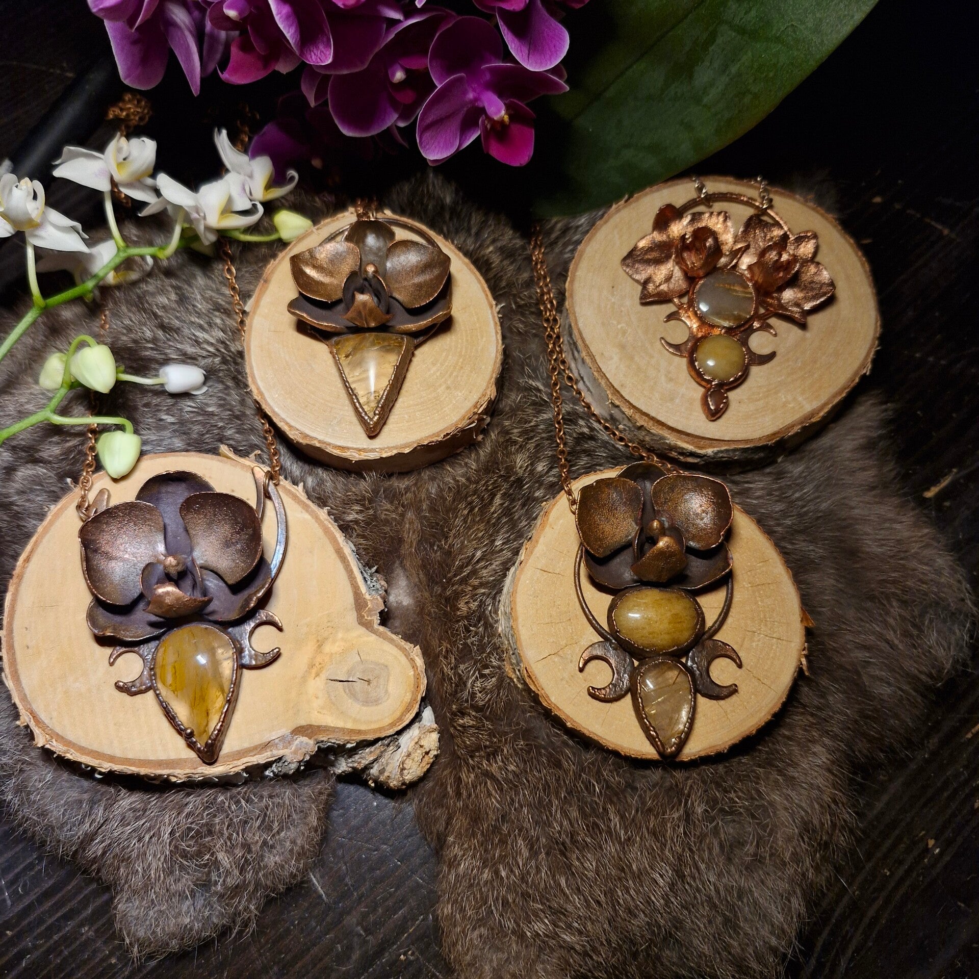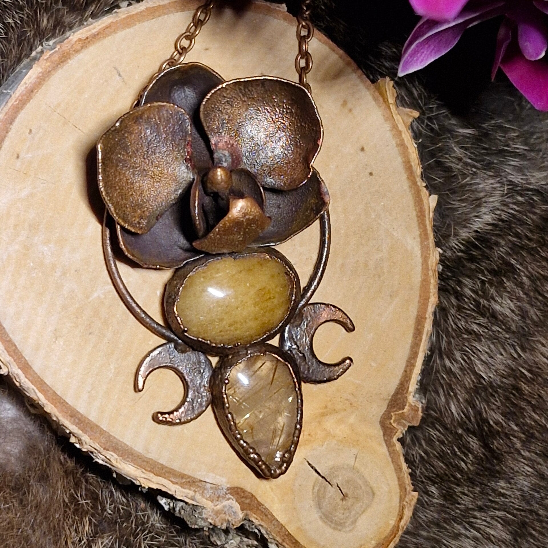 Echte orchideeën met Beryl en Rutiel kwarts of ... over groeid met koper.