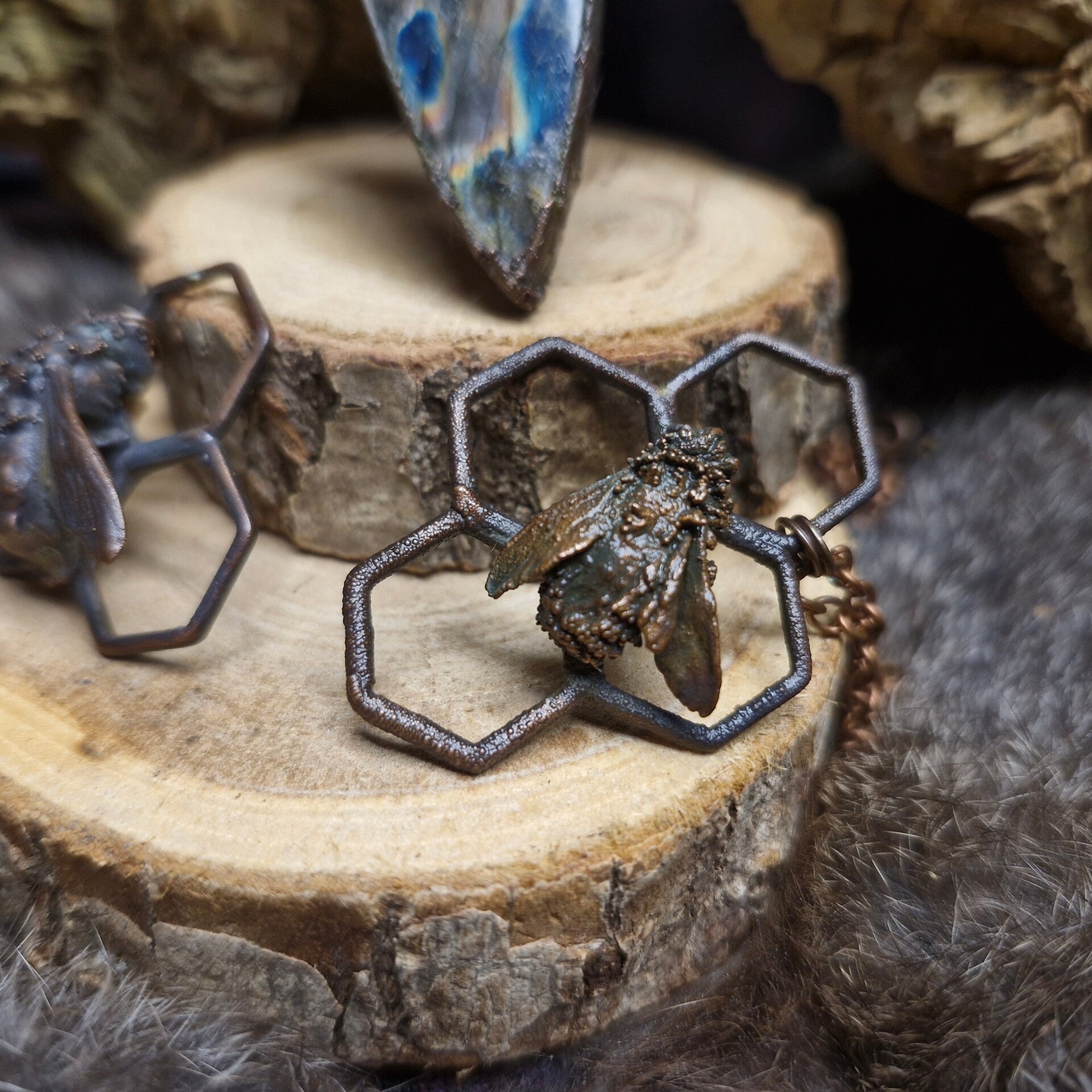 Met koper overgroeide hommeltjes, eigen vondsten gecombineerd met een prachtige spectroliet labradoriet en honing raadjes.