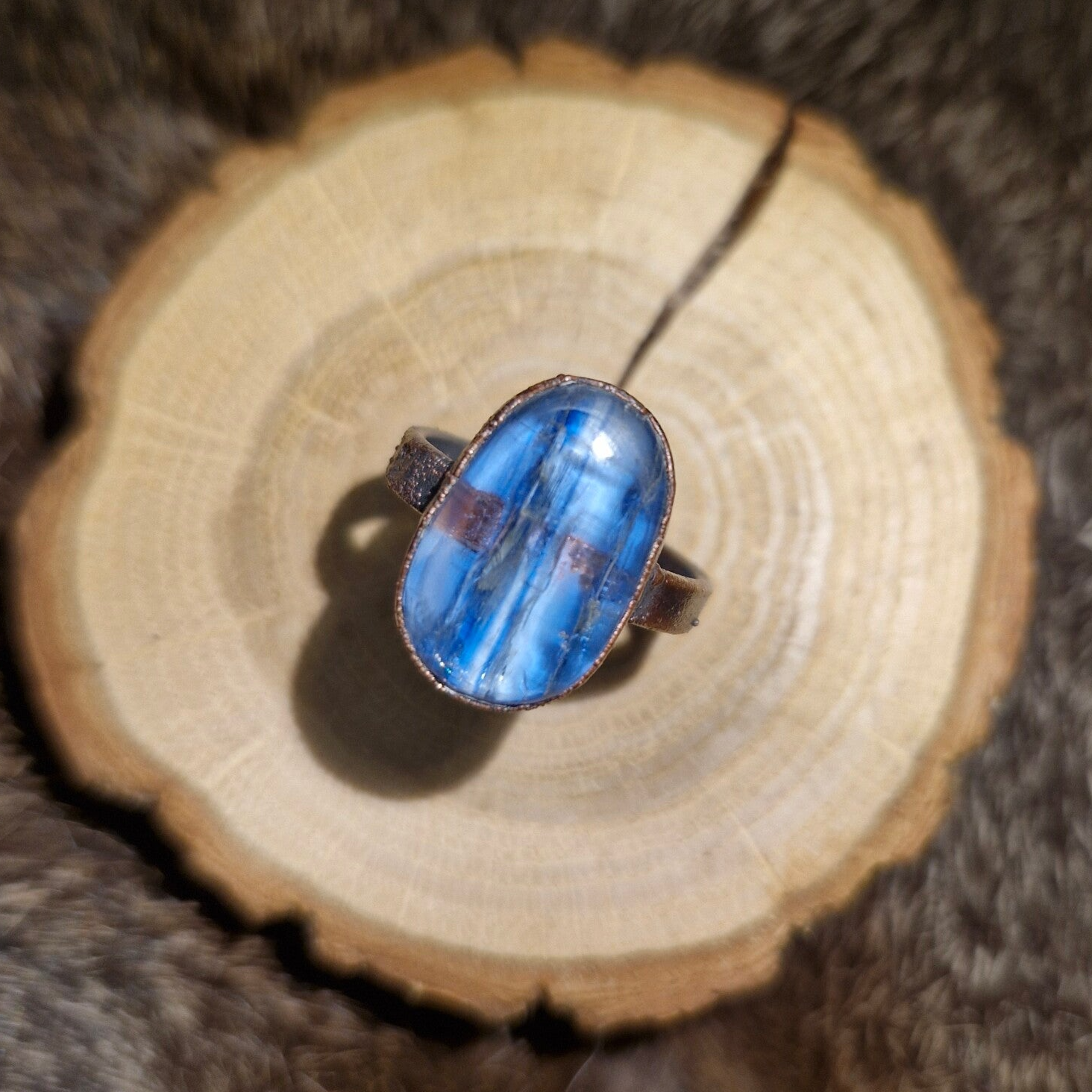Overgroeid met koper op een brede of gedraaide band.