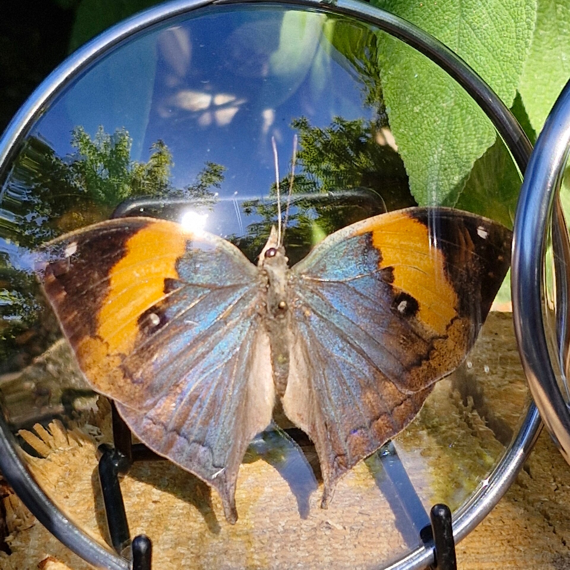 Prachtige unieke handgemaakte, glas in lood lijst met een echte vlinder.